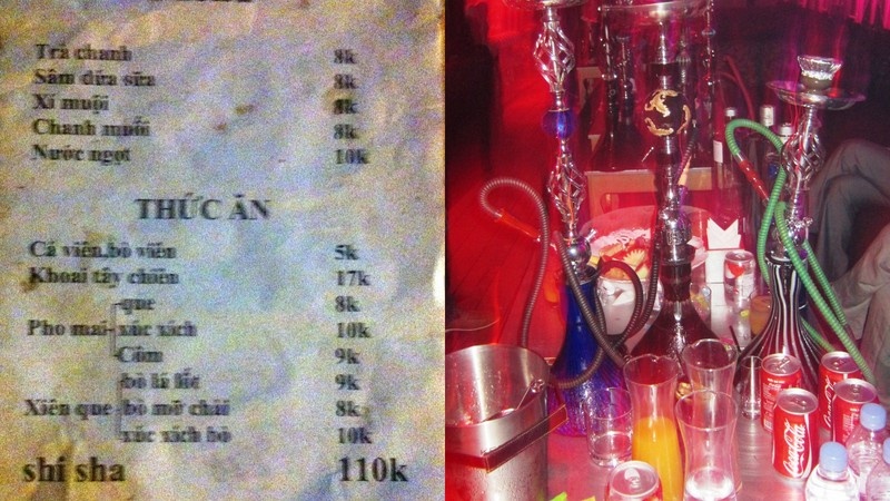 | Thực đơn bán công khai shisha ở quán trà chanh không ai kiểm tra xử phạt và các bình shisha cơ quan chức năng tịch thu trong bar Lê Thánh Tôn (Q.1) |