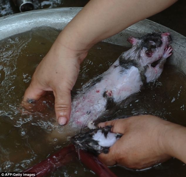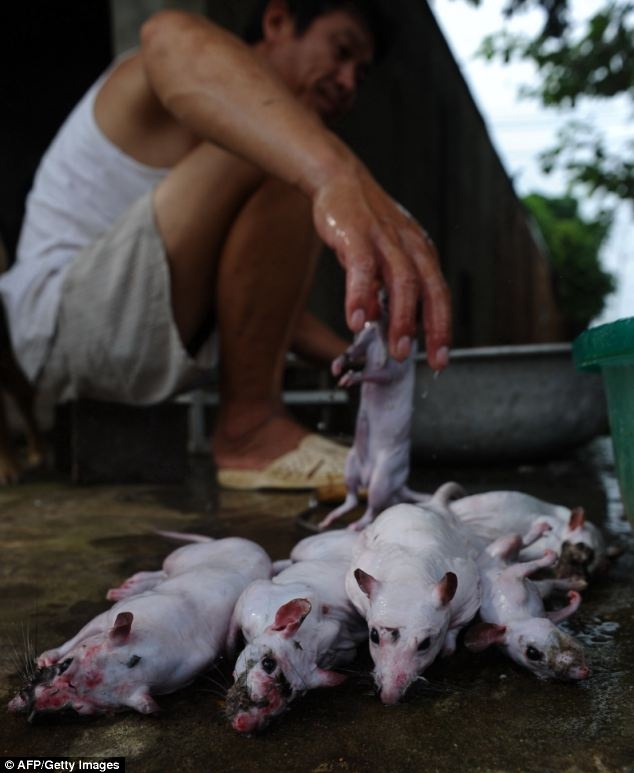 | Làm thịt chuột chuẩn bị cho phiên chợ quê. Ảnh: Daily Mail. |