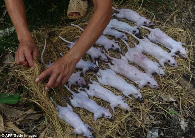 | Thịt chuột thường béo hơn khi vào mùa lúa chín. Ảnh: Daily Mail. |