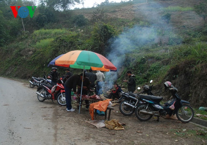 | Dọc quốc lộ 4D từ Sapa đi thành phố Lào Cai và đầu ngã 6 Kim Tân xuất hiện chợ di động bán thịt trâu bò chết rét. |