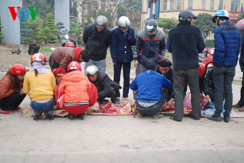 | Thịt trâu, bò chết được bày bán la liệt trên các tuyến quốc lộ |