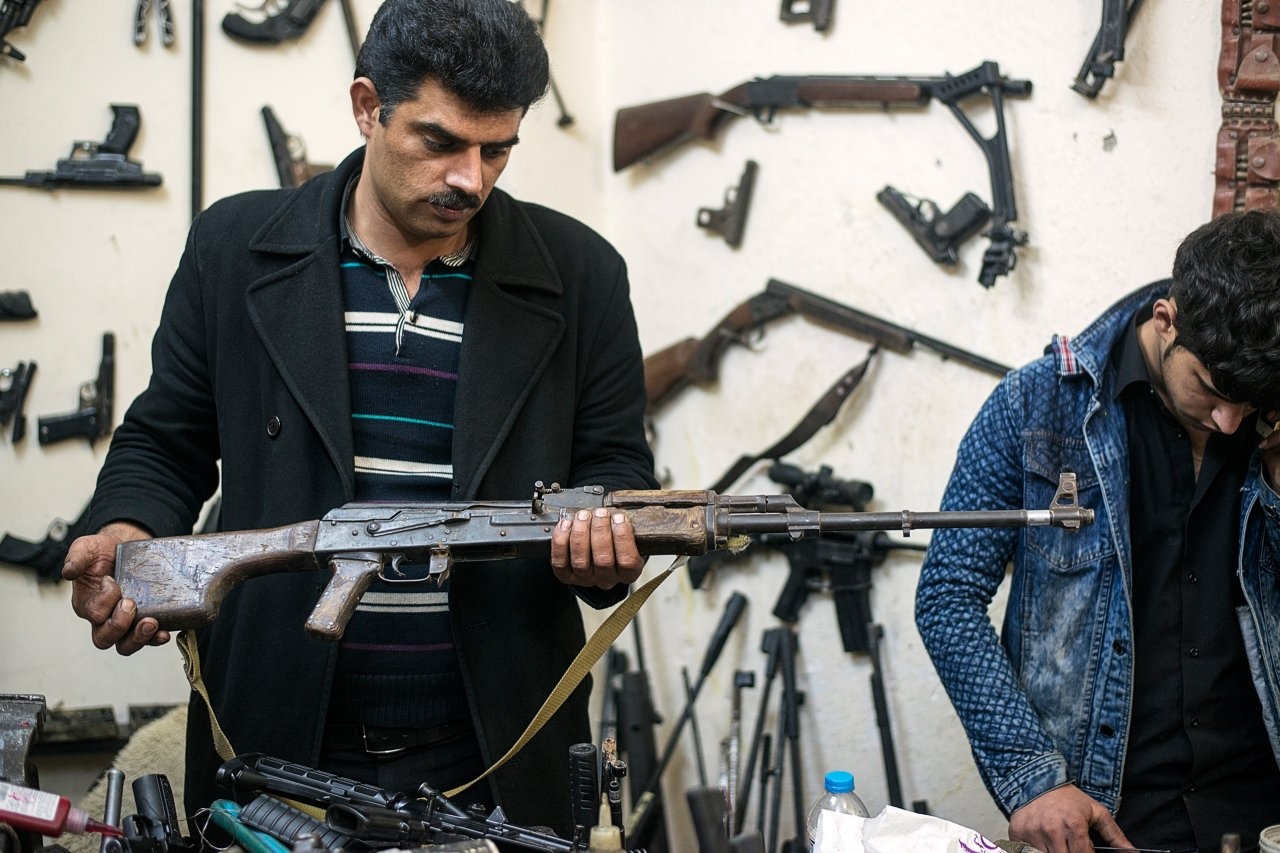 Bakhtiar khoe một khẩu súng lục Tokarev tại xưởng sản xuất súng của anh. "Đa số khách hàng của tôi là các chiến binh người Kurd, binh lính chính phủ hay những người được phép dùng súng. Phần lớn thời gian tôi làm việc ở đây, nhưng nhiều lúc tôi tham chiến chống IS cùng lực lượng người Kurd và sửa vũ khí giúp họ ngay tại chiến trận", Bakhtiar chia sẻ.