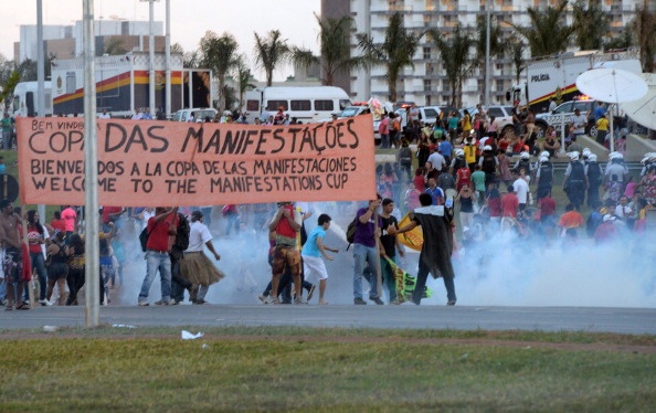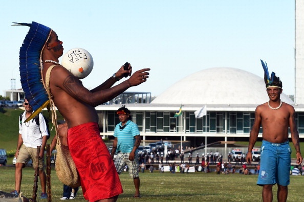 | Cuộc biểu tình của các thổ dân bắt đầu nổ ra từ 27/05 và kéo dài sang đến ngày hôm sau. Đã có khoảng 1.500 người, với cung tên, giáo mác, gậy gộc... kéo về SVĐ Quốc gia ở thủ đô Brasilia và tòa nhà Quốc hội để phản đối kế hoạch tổ chức World Cup tốn kém của chính phủ Brazil. |