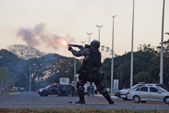 | Cảnh sát chống bạo động đã phải sử dụng súng bắn hơi cay để trấn áp những người biểu tình quá khích. |
