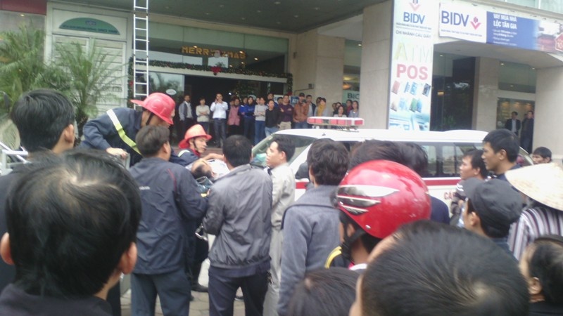 | Sự việc xảy ra vào 13h ngày 28/11 tại số tòa nhà ở số 106, Hoàng Quốc Việt, Cầu Giấy, Hà Nội. |
