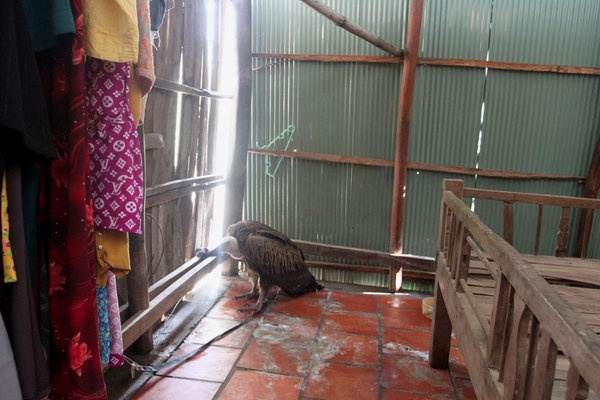 | Con chim quý bị nhốt trong nhà sau khi dính bẫy. Ảnh: NYTimes |