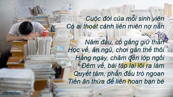 Đời sống Thơ vui sinh viên: Em tiền ở đâu? Thứ ba, 29/7/2014 21:50 (GMT+7) 21:50 29/7/2014 Giới trẻ đã có những vẫn thơ hài hước về đời sinh viên. http://www.tiin.vn/chuyen-muc/vui/tho-vui-sinh-vien-em-tien-o-dau.html Theo SaolaSao/Báo Đất Việt Sinh viên thơ vui sinh viên Đọc tiếp Ảnh chế siêu hài về chàng ca sĩ nông dân Lệ Rơi 08:32 28/6/2014 08:32 28/6/2014 11 3 8 249 Chàng nông dân nổi lên từ những clip nhạc tự biên tự diễn với nghệ danh Lệ Rơi đang khuấy đảo cư dân mạng. Ảnh chế bi hài mùa thi của Phở Đặc Biệt 19:17 4/6/2014 19:17 4/6/2014 105 16 89 18046 Những ngày qua, chàng trai của những clip hài đã có nhiều câu "ranh ngôn" hài hước về thi. Loạt ảnh chế chúc sĩ tử thi tốt tràn ngập mạng xã hội 09:28 4/7/2014 09:28 4/7/2014 14 14 112 Ảnh chế luôn là một trong những cách dân mạng dùng để thể hiện sự quan tâm của mình. Trong kì thi ĐH, CĐ quan trọng, các bức ảnh này như động lực giúp các sĩ tử thêm tự tin. Bạn có thể quan tâm