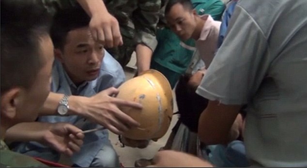 Một thợ xây ở tỉnh Tứ Xuyên, Trung Quốc thoát khỏi tình trạng nguy hiểm sau khi anh ngã vì điện giật khiến một thanh sắt xuyên qua đầu.