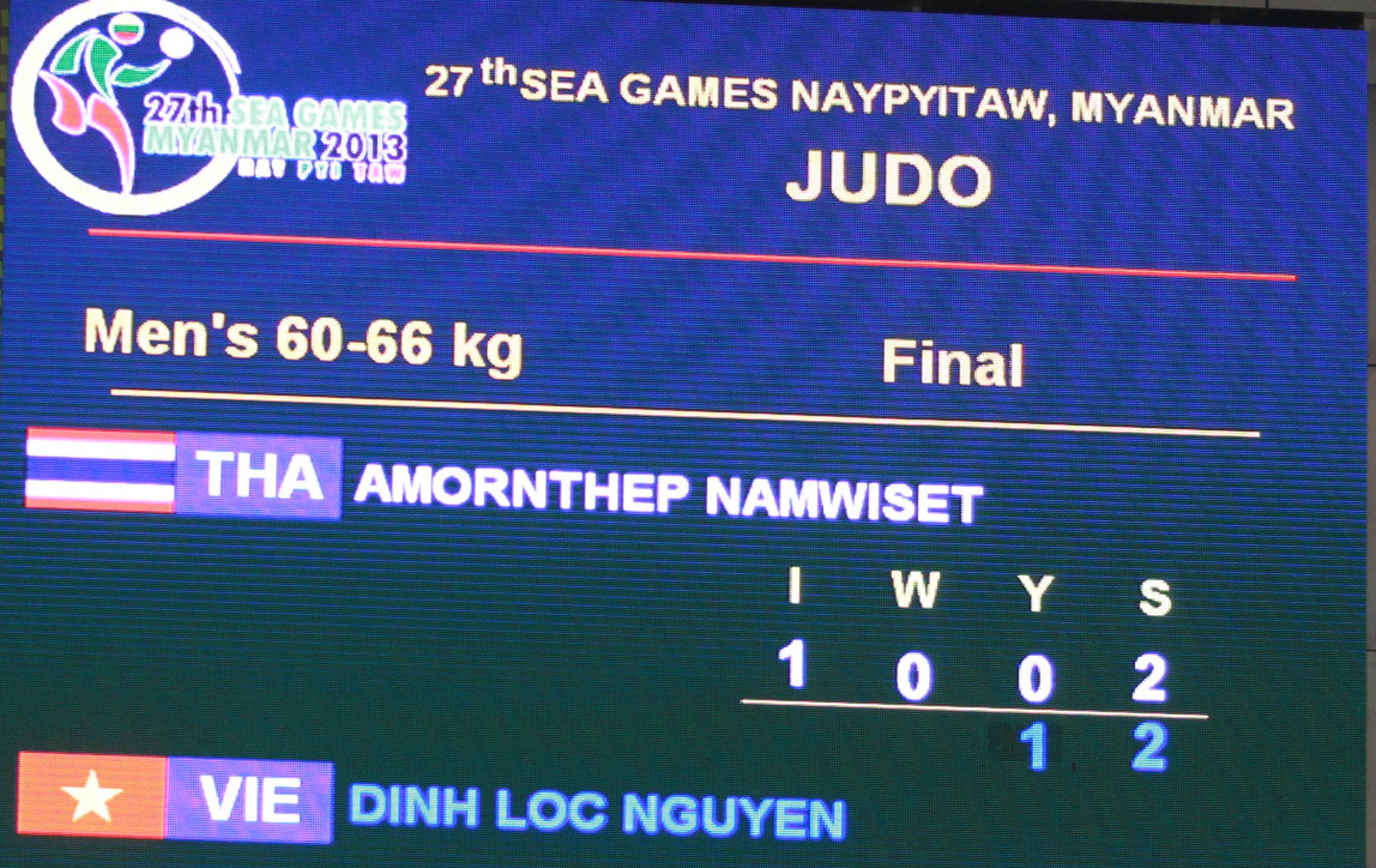 Ở trận chung kết hạng dưới 66kg, Nguyễn Đình Lộc tiếp tục thi đấu ấn tượng. Khi trận đấu còn chỉ còn hơn một phút, VĐV của Việt Nam vẫn dẫn đối thủ Amrnthep Namwiset của Thái Lan 1 điểm Yuko.