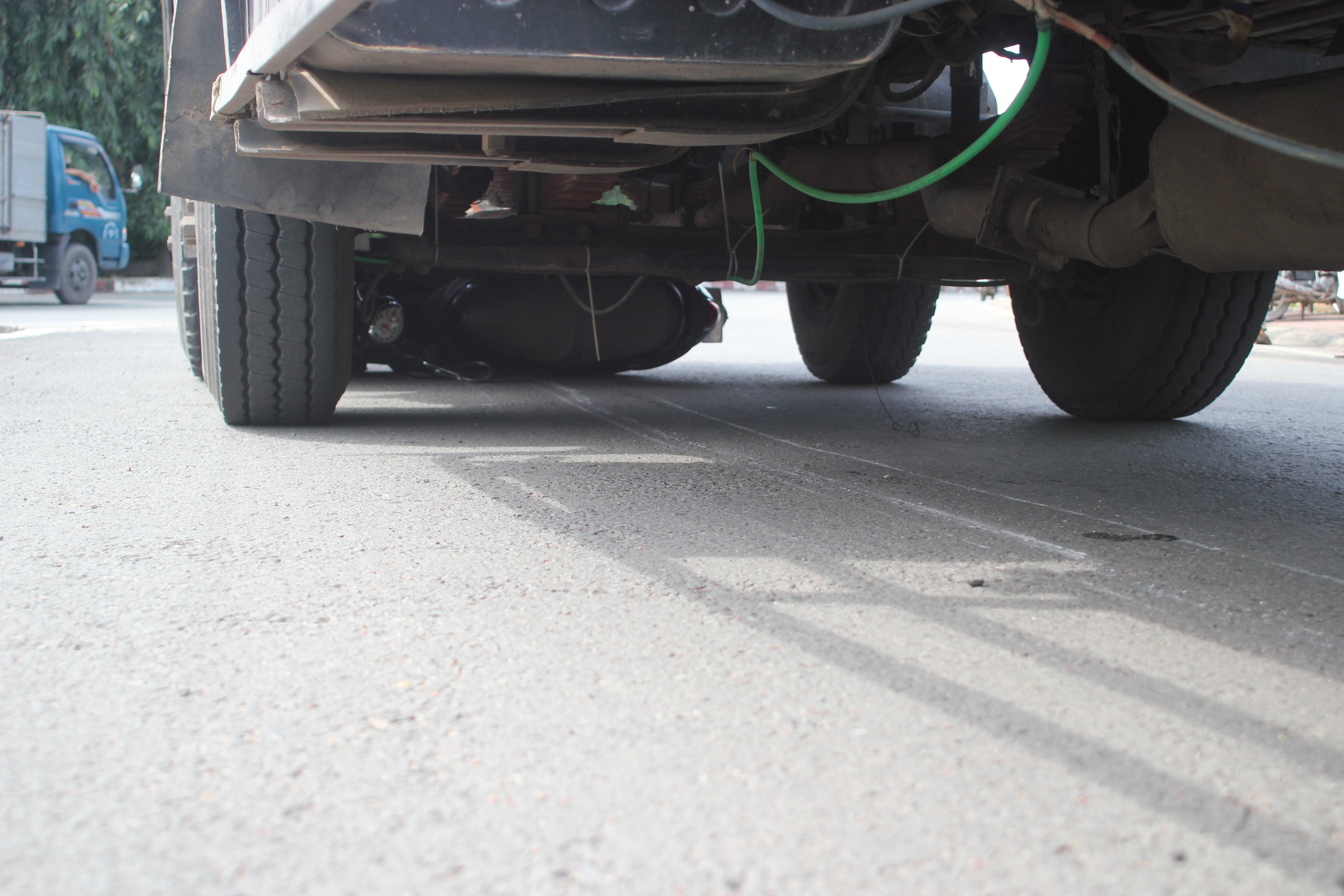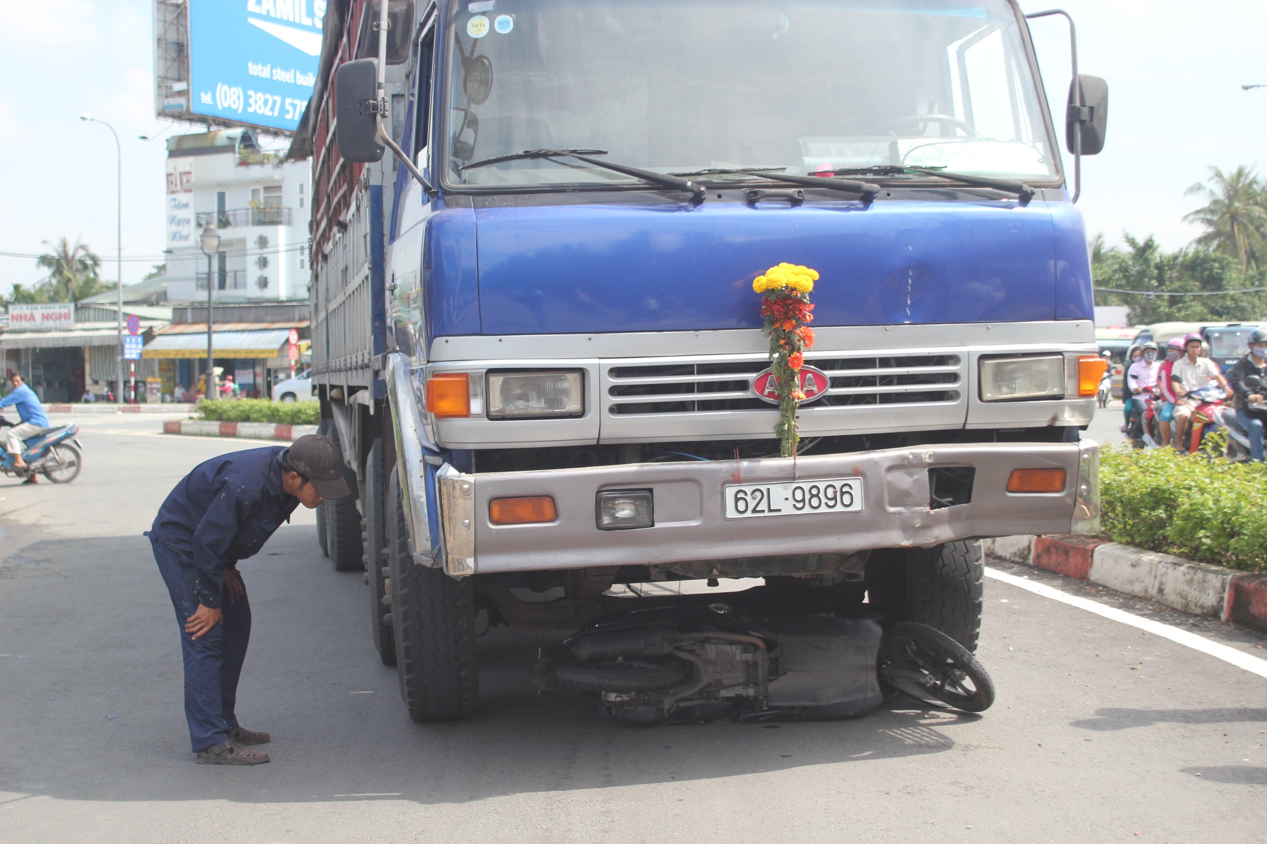 Tại hiện trường, xe máy của nạn nhân nằm ngay dưới cabin xe tải. Chị Lan được người dân xung quanh kéo ra rồi đưa đi cấp cứu tại bệnh viện Chợ Rẫy với nhiều vết thương trên người.