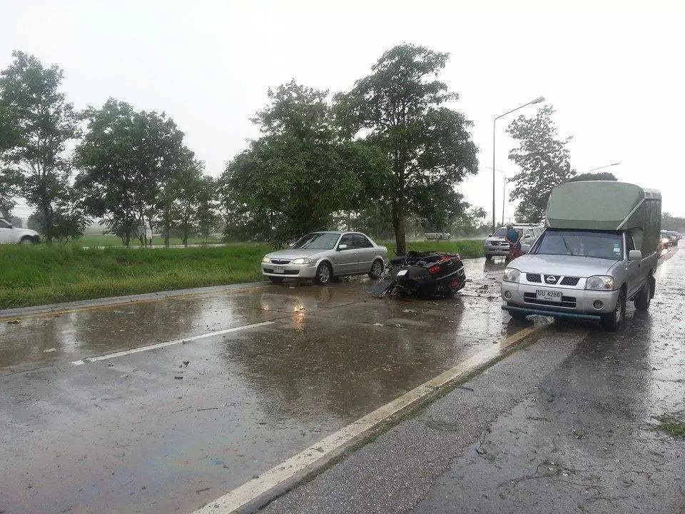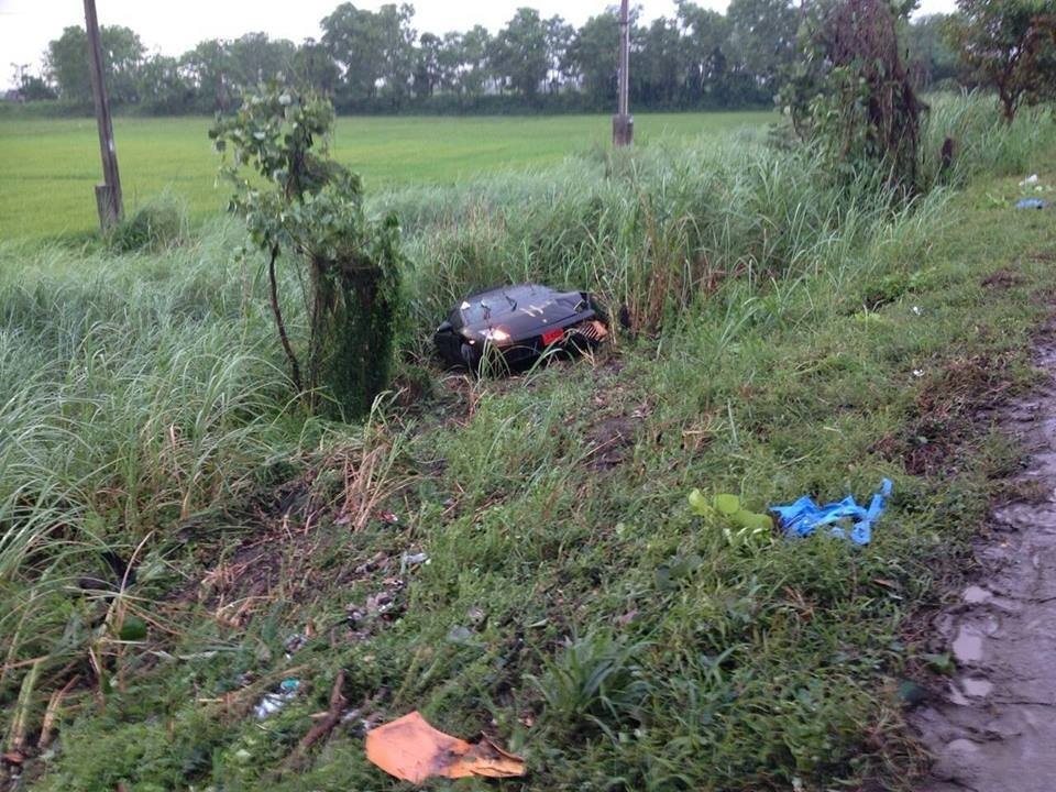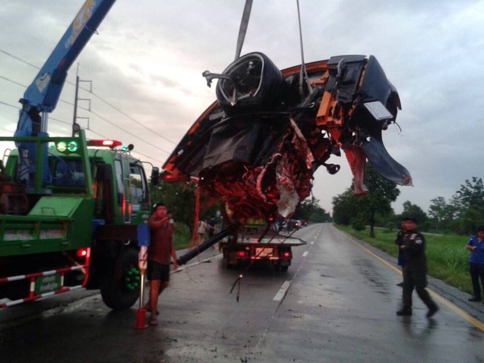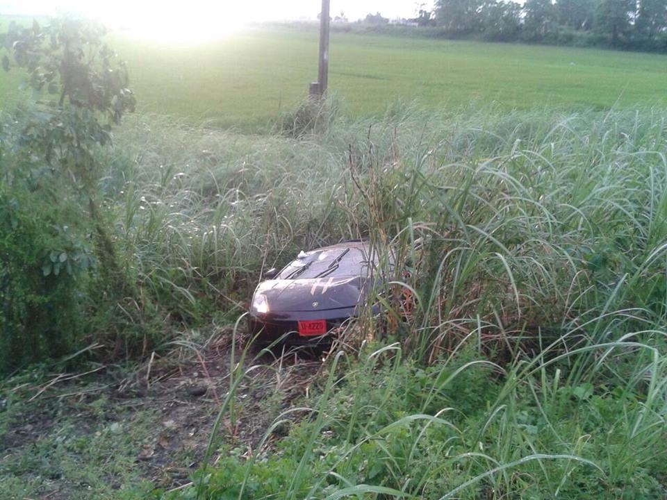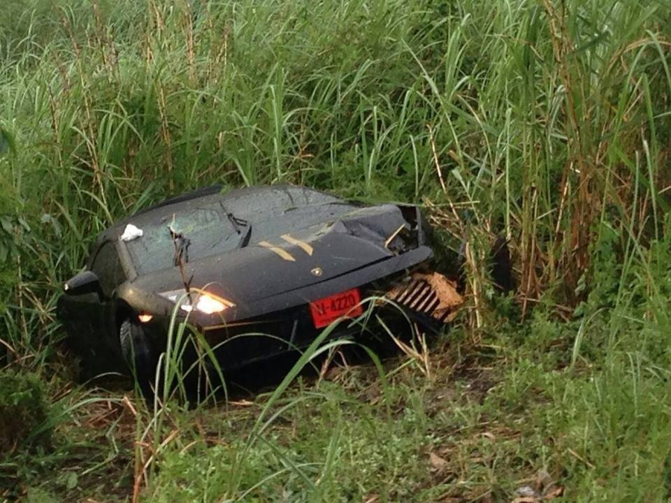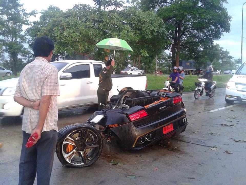 | Vụ tai nạn diễn ra vào ngày 24/6 tại Thái Lan. Một doanh nhân có tên Pitak Riangsima, 40 tuổi, đã lái chiếc xe với vận tốc 150 km/h và phóng trên con đường trơn trượt. Trời mưa đã khiến bánh xe của chiếc Gallardo bị trượt bánh, sau đó đập vào một gốc cây. |