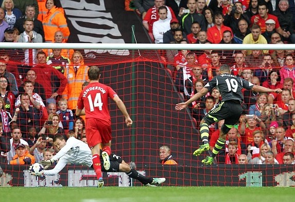 | Daniel Sturridge mở tỷ số cho Liverpool ở phút 37. |