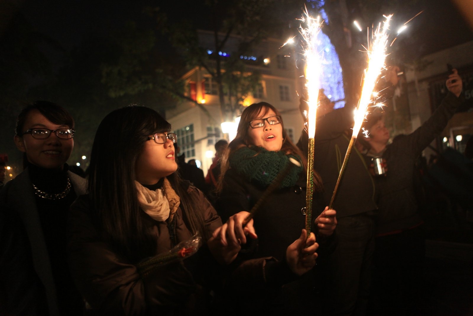 | Còn những người khác, ai nấy đều hân hoan, rạng rỡ khi năm mới vừa tới. Ảnh: Lê Hiếu. |
