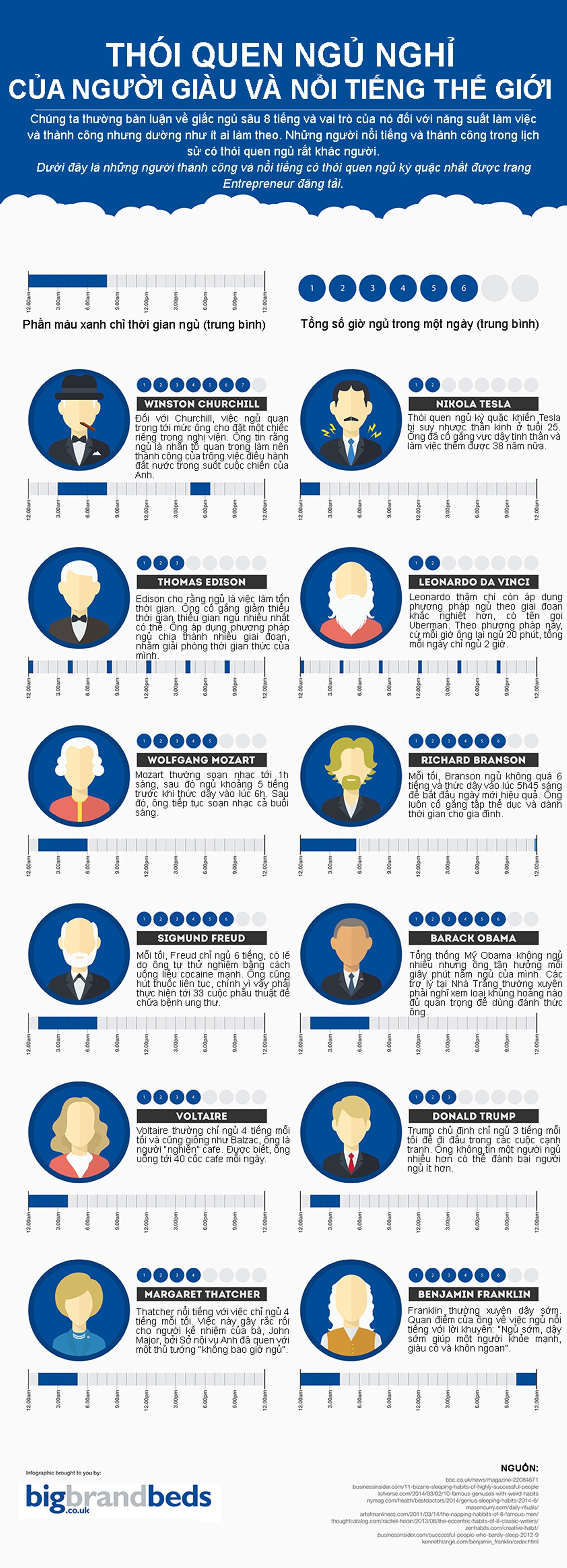 Ngủ từng giấc nhỏ, theo từng giai đoạn hay chỉ ngủ 2 tiếng mỗi ngày là thói quen của những người thành công và nổi tiếng trên thế giới.
