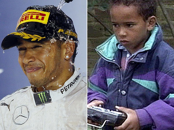 | Từ khi còn "con nít", Lewis Hamilton đã mê xe đua và tốc độ. Trong ảnh, Hamilton đang say sưa lái một chiếc ô tô điều khiến từ xa. |