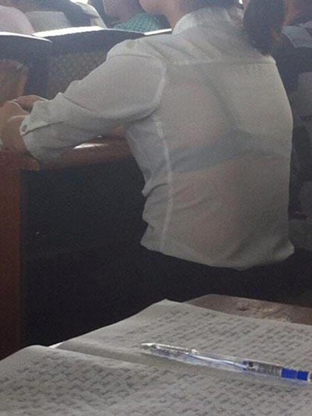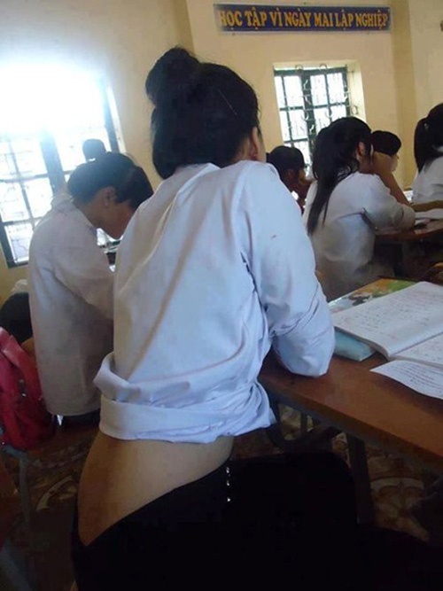 | Mới đây, bức ảnh nữ sinh mặc áo lộ nội y nhức mắt trên một diễn đàn đã trở thành đề tài bàn tán cho cư dân mạng. Thật khó có thể chấp nhận việc mang một chiếc áo thủng lỗ chỗ, lộ nội y thế này lên giảng đường. Cũng từ trường hợp này, nhìn lại hình ảnh thời trang học đường của nữ sinh sẽ thấy rằng ở đâu đó, nhiều trang phục dường như chỉ hợp với vũ trường được nhiều bạn gái mang đến giảng đường, làm vẩn đục hình ảnh của nơi "tiên học lễ, hậu học văn". |
