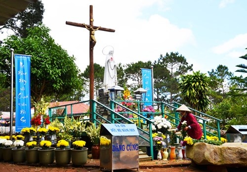 Đã gần 9 năm, bà Lê Thị Cúc (sinh năm 1947, quê Hà Nam) rời nhà ở Thủ Đức, TP HCM lên đây, mua hẳn căn biệt thự lô 12 ở thôn Măng Đen định cư lâu dài, tự nấu ăn, chỉ để ngày ngày quét dọn, lau chùi, thay hoa quanh tượng đài Đức Mẹ.