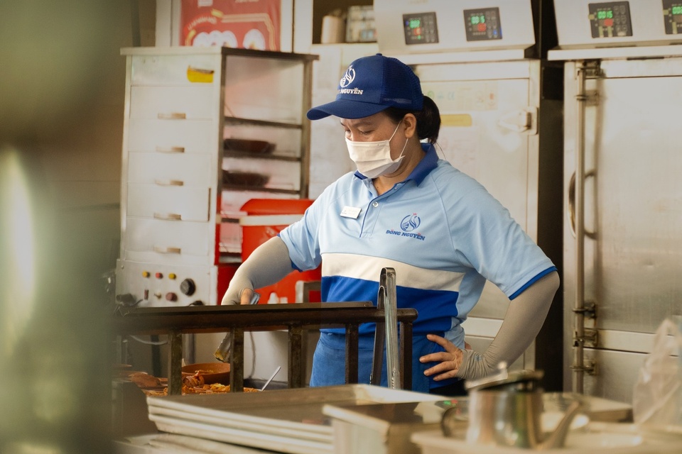 Nhân viên cửa tiệm chế biến món ăn. Thương hiệu này xuất hiện từ năm 1945, duy trì qua nhiều thế hệ gia đình. |