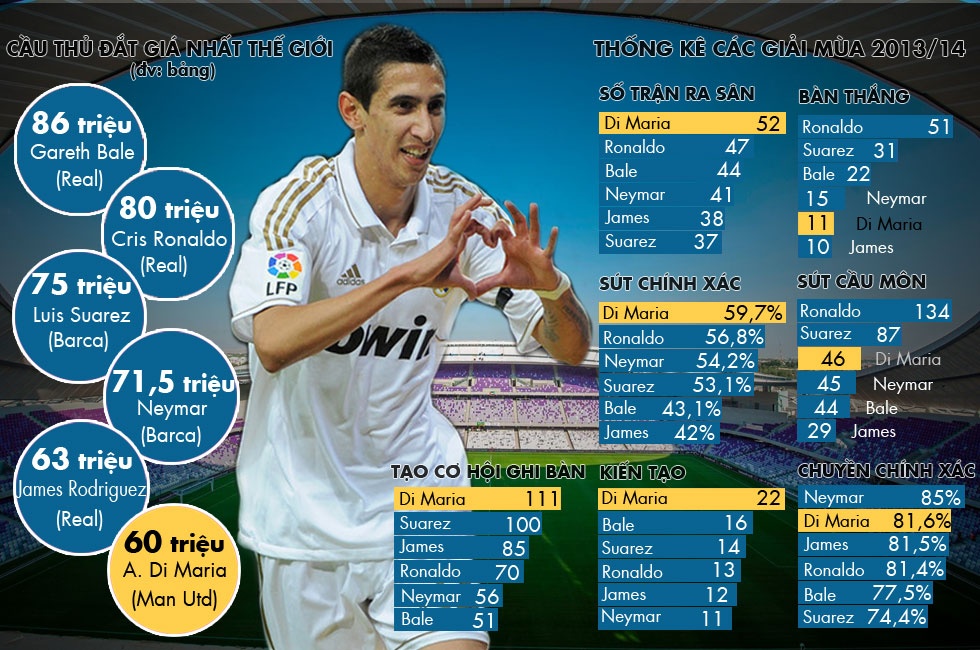 - M.U chính thức sở hữu Di Maria với giá kỷ lục bóng đá Anh