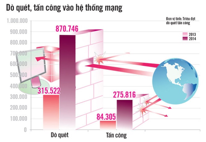 Năm 2015, các hành vi dò quét và tấn công hệ thống thông tin điện tử TP HCM không giảm so với năm 2014, mức độ và tính chất nguy hiểm ngày càng cao. Nguyên do: các đơn vị liên thông kết nối ngày càng nhiều.