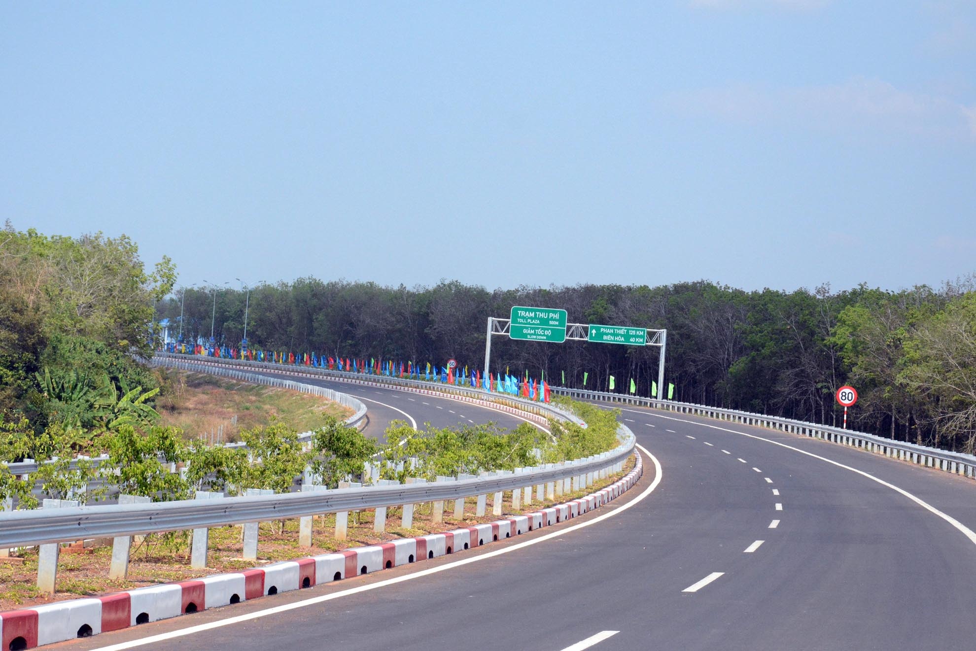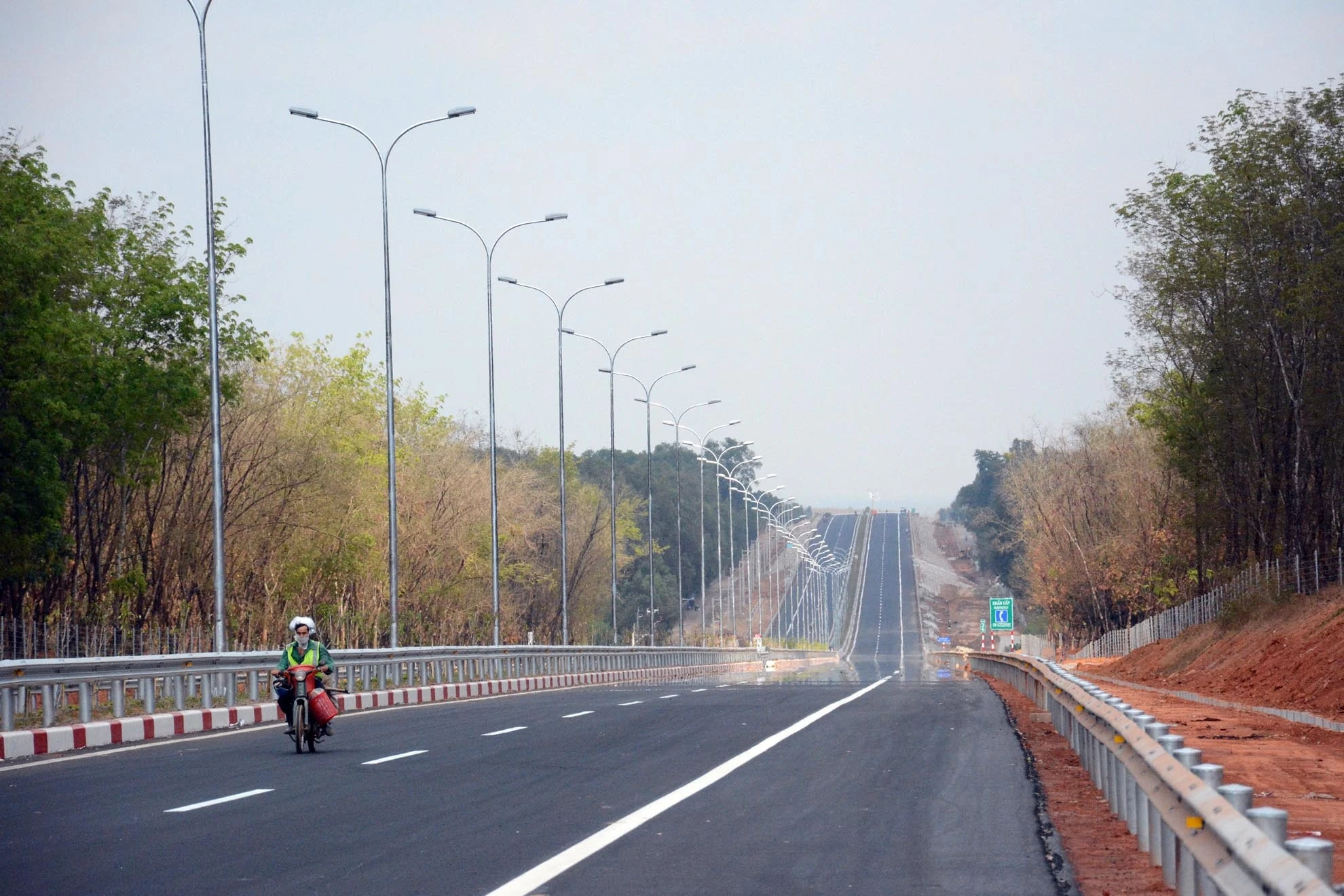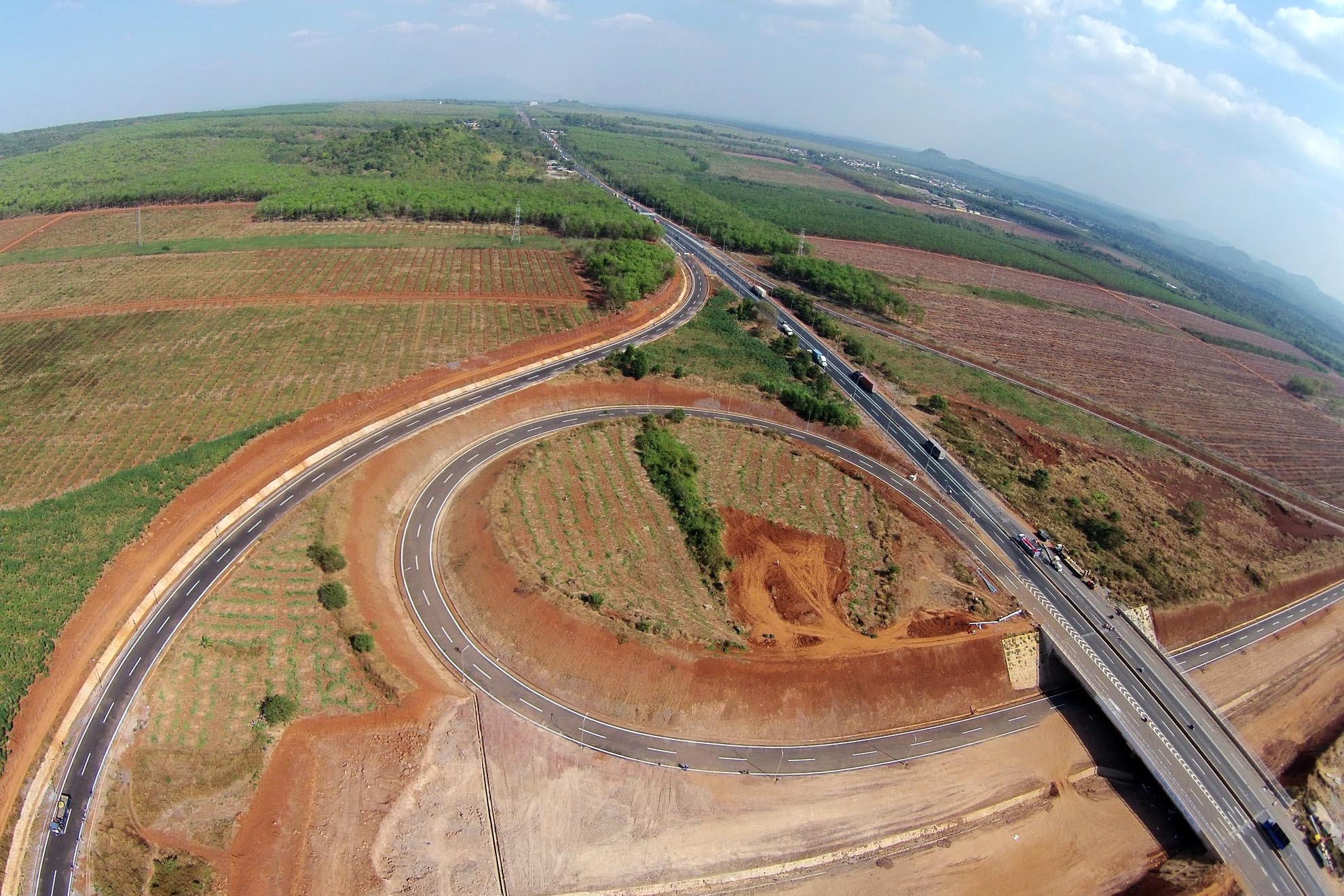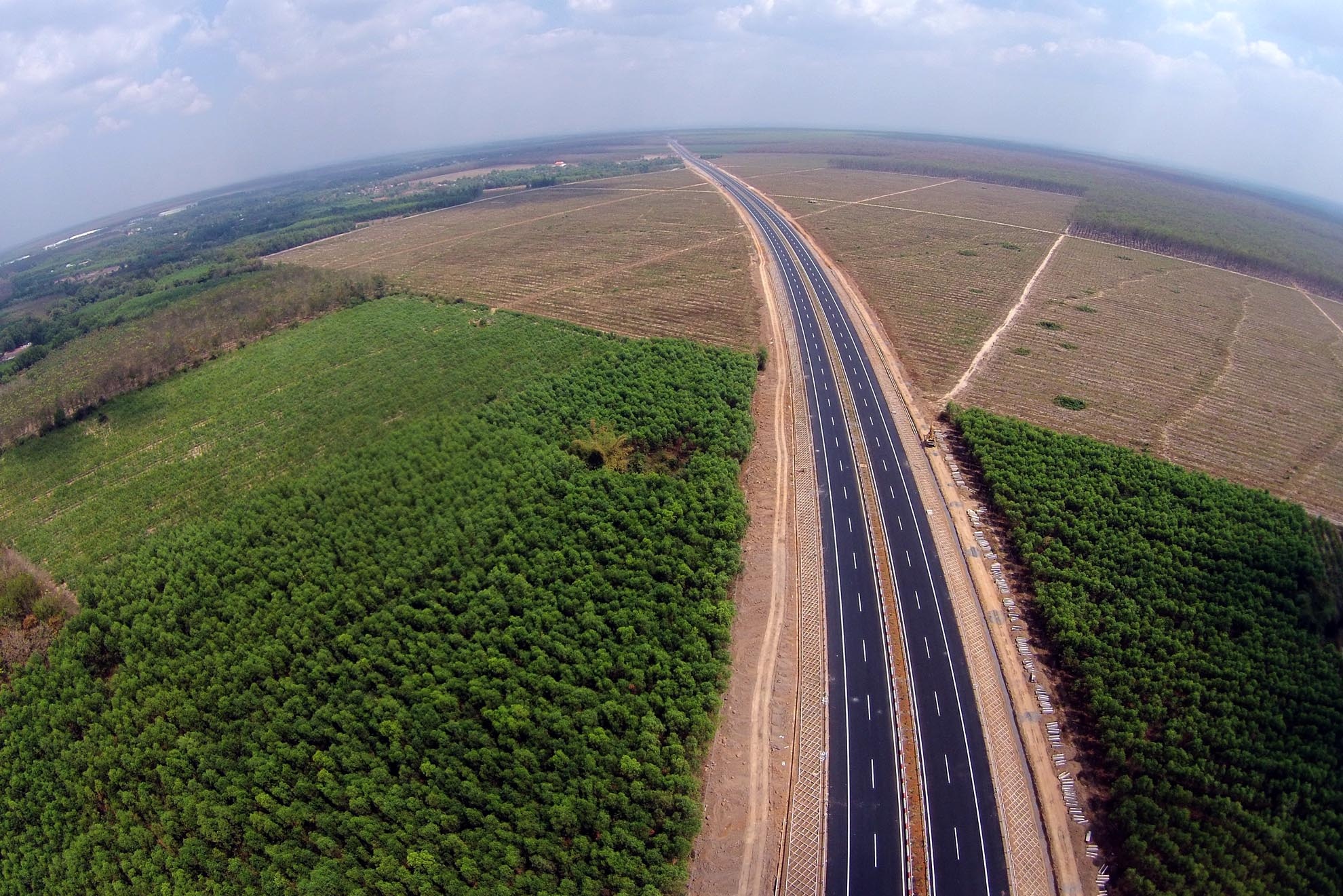 | Đường cao tốc được đầu tư hàng tỷ đô chạy xuyên qua bạt ngàn cây cao su xanh mướt của vùng Đông Nam Bộ. |