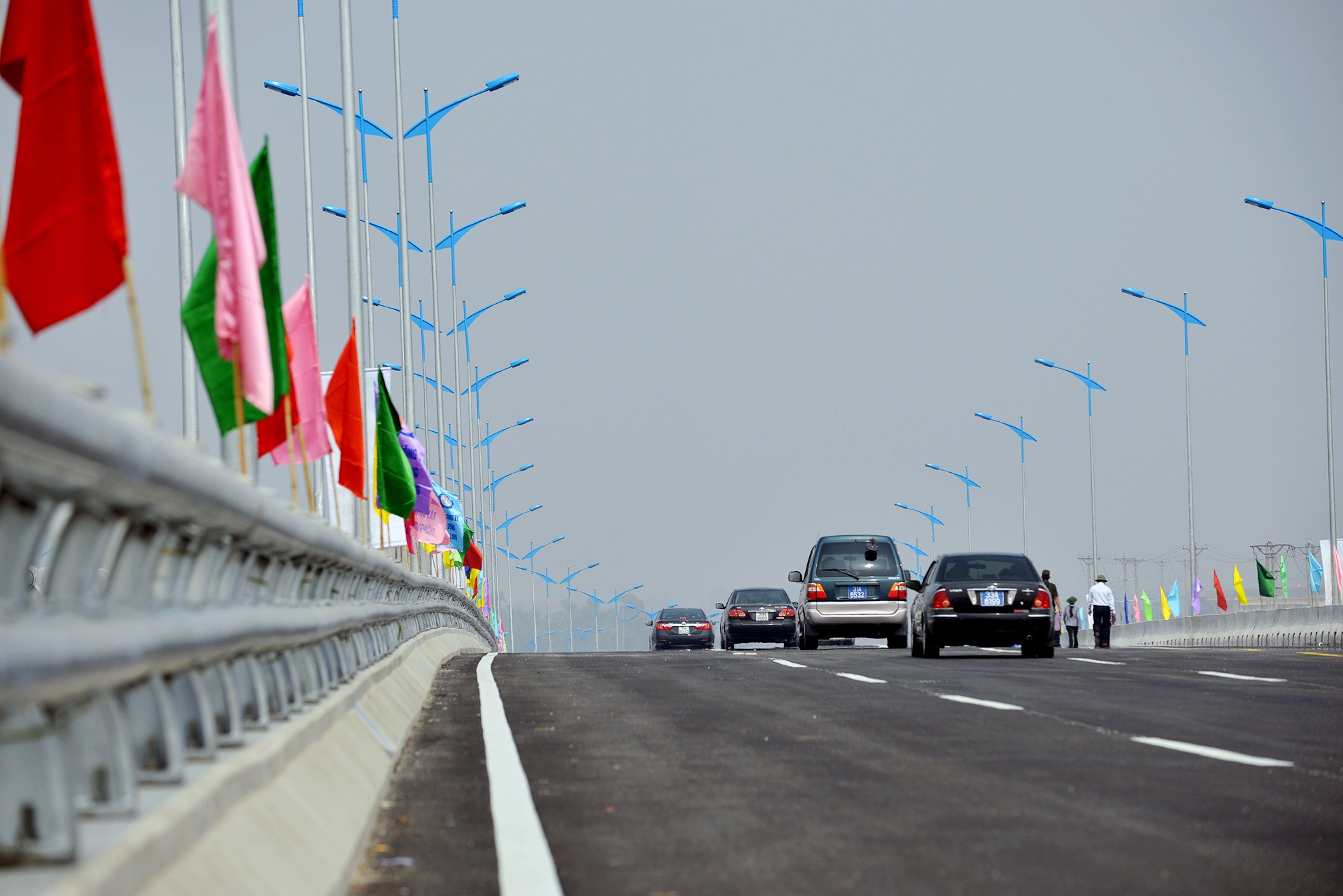Cầu có 8 làn xe, ngoài hệ thống đường dẫn hai đầu.