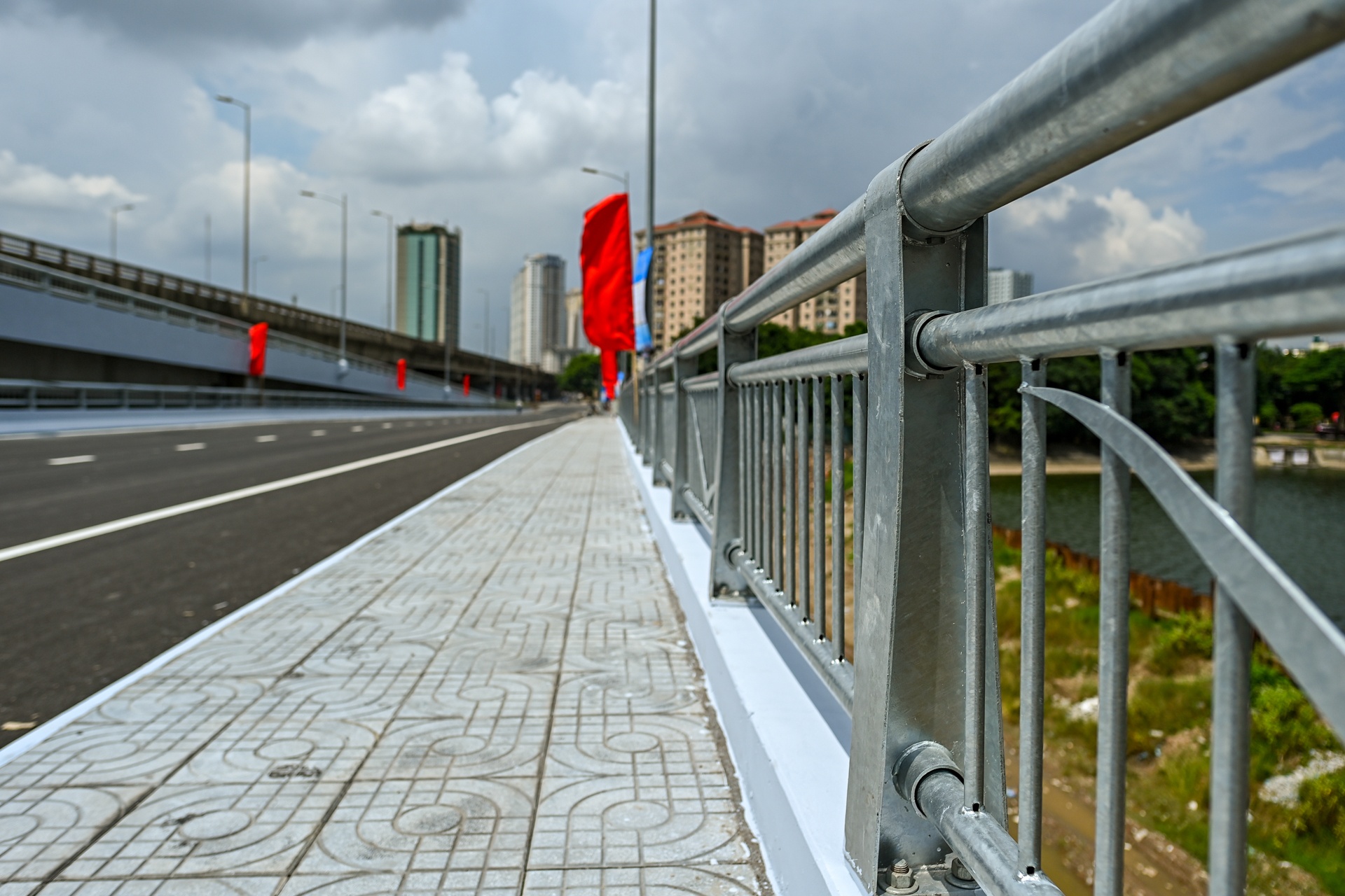 | Mỗi bên cầu vượt được thiết kế một nhánh lên xuống kết nối với đường vành đai 3 trên cao và cầu vượt phía dưới. |