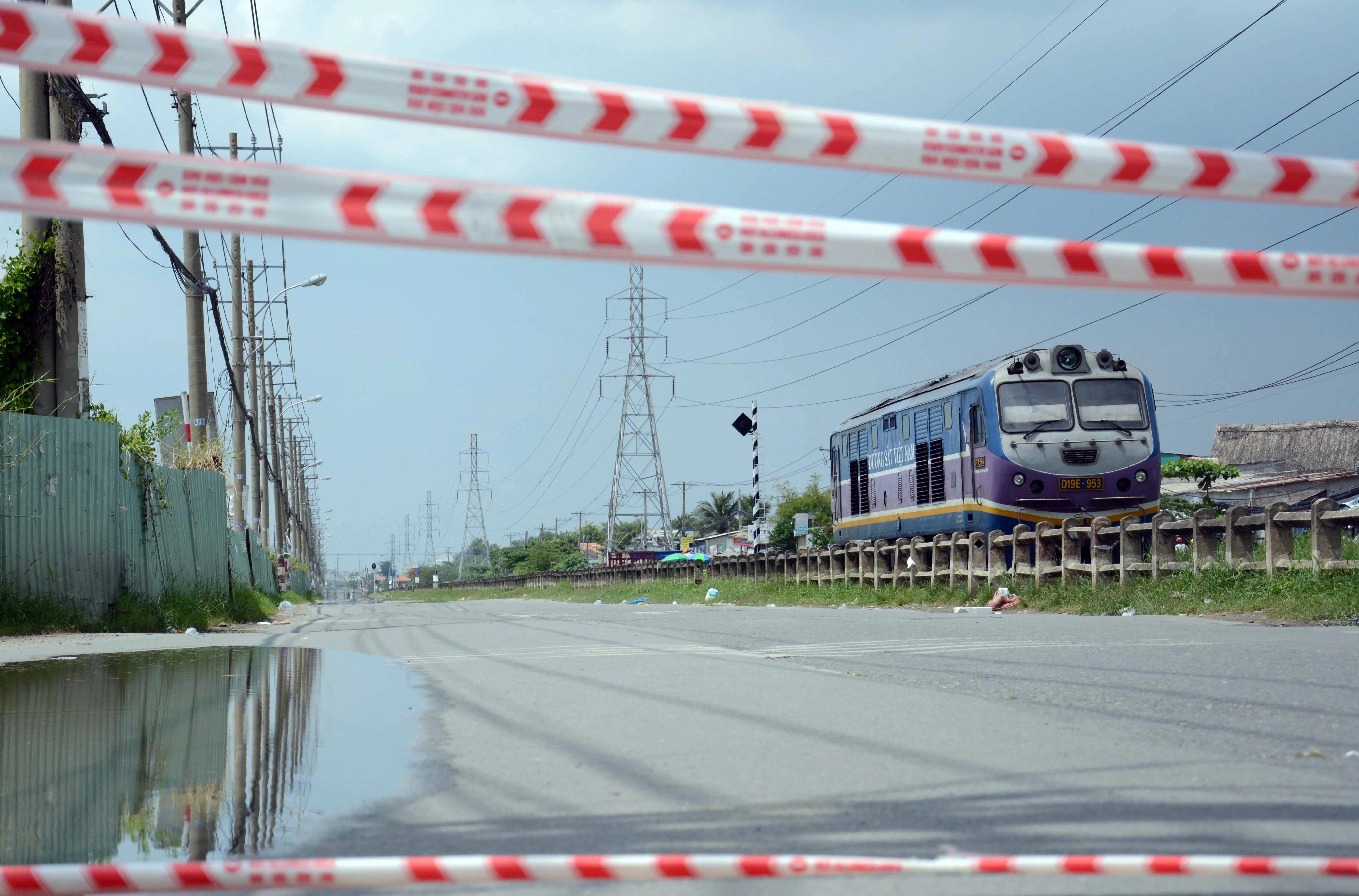 | Đoạn đường Kha Vạn Cân được chăng dây rào chắn các đầu, không một bóng người và xe cộ. Một hình ảnh khác biệt so với bình thường. |