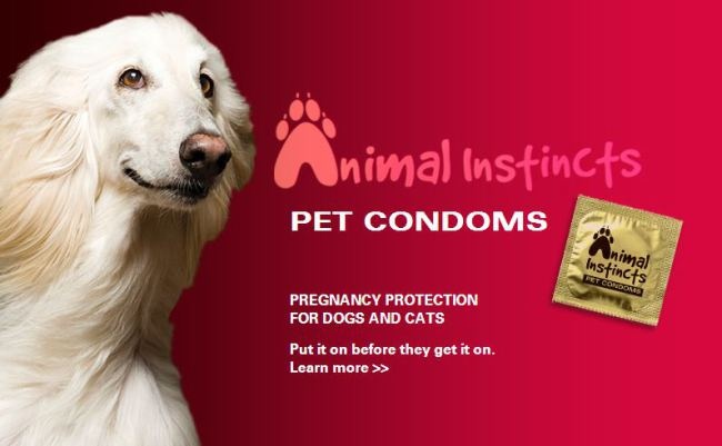 Kích chuột vào trang web, người xem sẽ thấy mục quảng cáo bao cao su dành cho thú cưng với tựa đề Animal Instincts condoms (tạm dịch bao cao su bản năng động vật) đi kèm với đó là hình ảnh một chú chó trắng vô cùng dễ thương đang “chào hàng”.