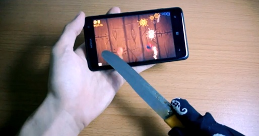 | Khi thử nghiệm game chém trái cây cùng với găng tay, bạn có nick name Z Zai đã khiến người xem ngạc nhiên với tài “bách chém bách trúng” trên Lumia 625. |