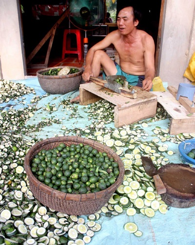 Tuyến Quốc lộ 54 qua địa bàn Vĩnh Long và Trà Vinh các huyện 2 địa phương này xuất hiện nhiều điểm thu mua và sơ chế cam non, cam sau khi mua về họ sắc lát mỏng rồi đem phơi khô. Giá cam non phơi khô có khi lên tới 12.000 đến 15.000 đồng/kg, vẫn là bán cho thương lái xuất sang Trung Quốc.