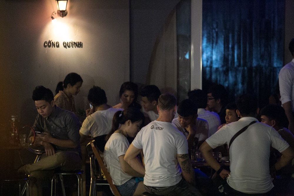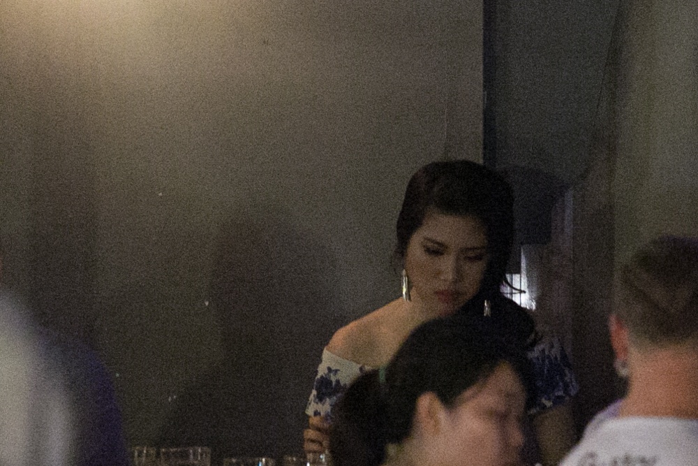 Sau đó, cô di chuyển qua quán pub mà Vĩnh Thụy mới mở. Cô ngồi an vị chờ đợi các món ăn hải sản từ quán kế bên đưa sang. Cô và Vĩnh Thụy ngồi uống rượu, cà kê với bạn bè đến tận 1,2 h sáng.