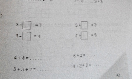 Trong cuốn sách nay, hai câu trong bài số 4, có nội dung: “3 trừ ô trống bằng 4 và 7 cộng ô trống bằng 5”. Trong khi đó, học sinh lớp 1 đang học về phép cộng, phép trừ trong phạm vi từ 2 đến 9.