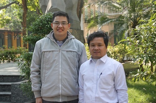 Vũ Đức Tài cùng thầy giáo Nguyễn Hoàng Cương (Trường THPT chuyên Lê Hồng Phong) . Ảnh: Giáo Dục & Thời Đại. |