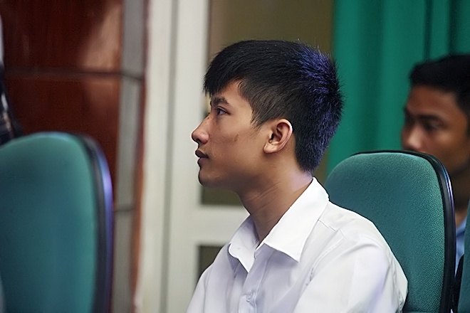 | Trong khi Hoàng (giữa) vui vẻ trò chuyện cùng bạn bè thì Tiến (bìa trái) ưu tư ngồi quay sang hướng khác. |