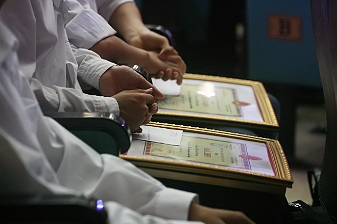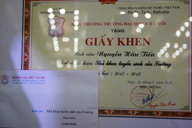 | Tấm giấy khen công nhận công sức học tập của Tiến và những thủ khoa đầu vào khác ở ĐH Y Hà Nội. |