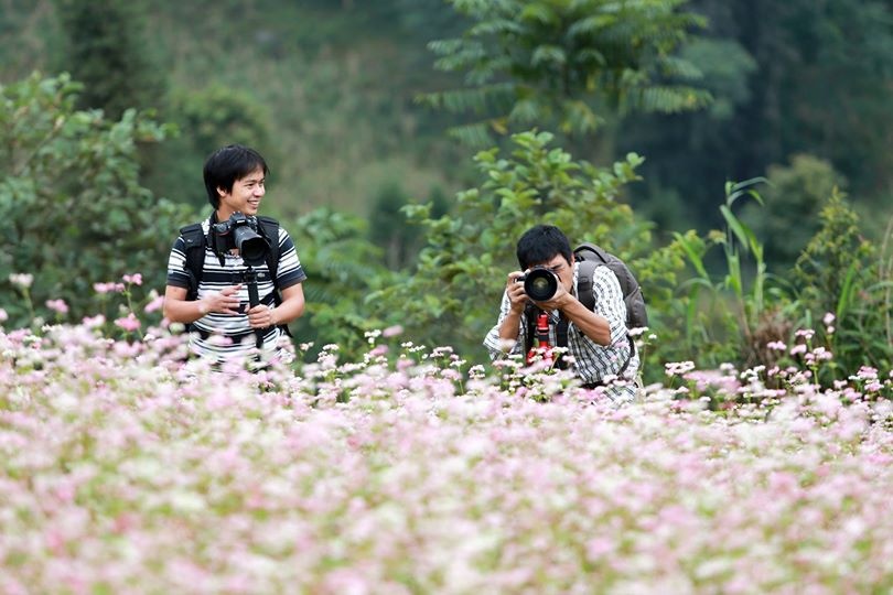 | Hầu hết khách du lịch đến Lào Cai đều có nhu cầu đến chụp ảnh hoa tam giác mạch. Ảnh: Phạm Hưởng. |