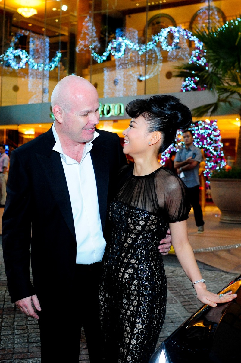 | Chiếc xe sang được ông xã của Thu Minh bí mật bàn bạc với chủ nhãn hàng đặt trước sảnh của khách sạn Sheraton - nơi diễn ra bữa tiệc Noel hoành tráng do vợ chồng cô tổ chức. Chiếc xe chưa được gắn biển số nhưng đã được in sẵn tên của chủ nhân khiến ai đi qua cũng phải trầm trồ. |