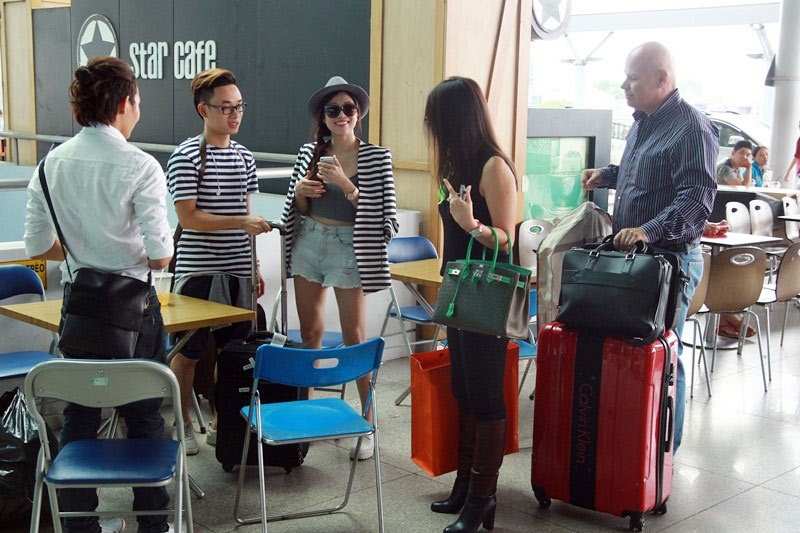 | Trúc Nhân cũng có mặt tại khu vực soát vé và bay cùng chuyến với vợ chồng Thu Minh. Nữ ca sĩ tỏ ra thân thiết với học trò cưng khi đưa tay vuốt tóc anh. |