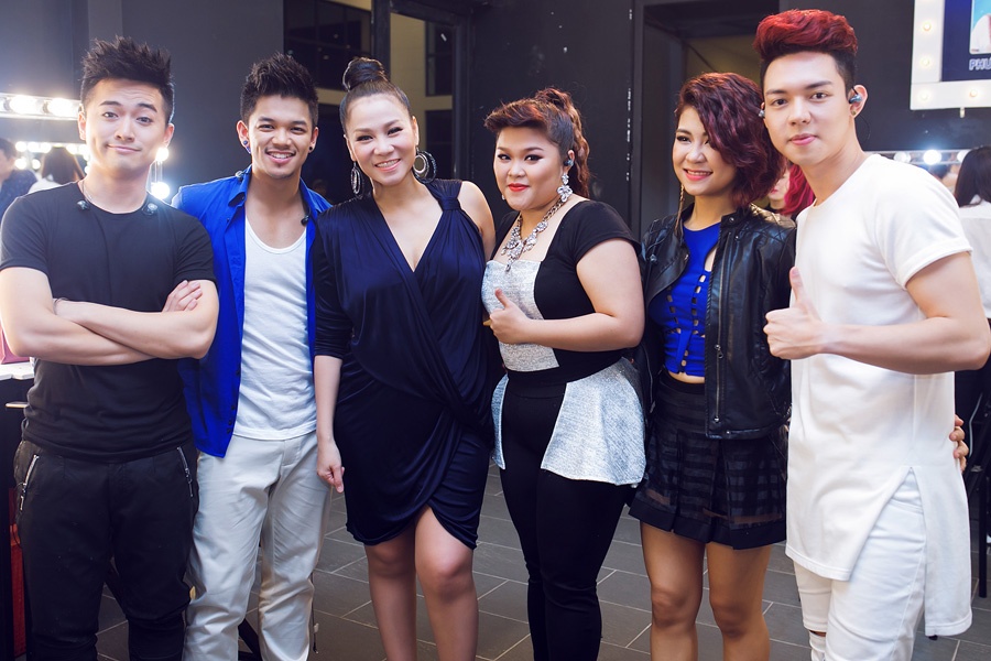 Dàn thí sinh tranh thủ chụp ảnh cùng giám khảo và thăm hỏi tình hình sức khỏe của mẹ và bé. Sự trở lại của Thu Minh giúp Top 7 có động lực khi lên sân khấu.