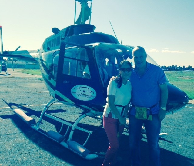 Thu Minh thích thú đi máy bay trực thăng cùng chồng