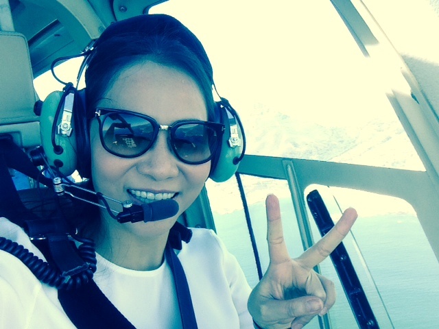 Thu Minh và chồng đã được mời lên máy bay trực thăng để ngắm nhìn quang cảnh Cape Town từ trên không với núi non hùng vĩ và cảnh thiên nhiên choáng ngợp.