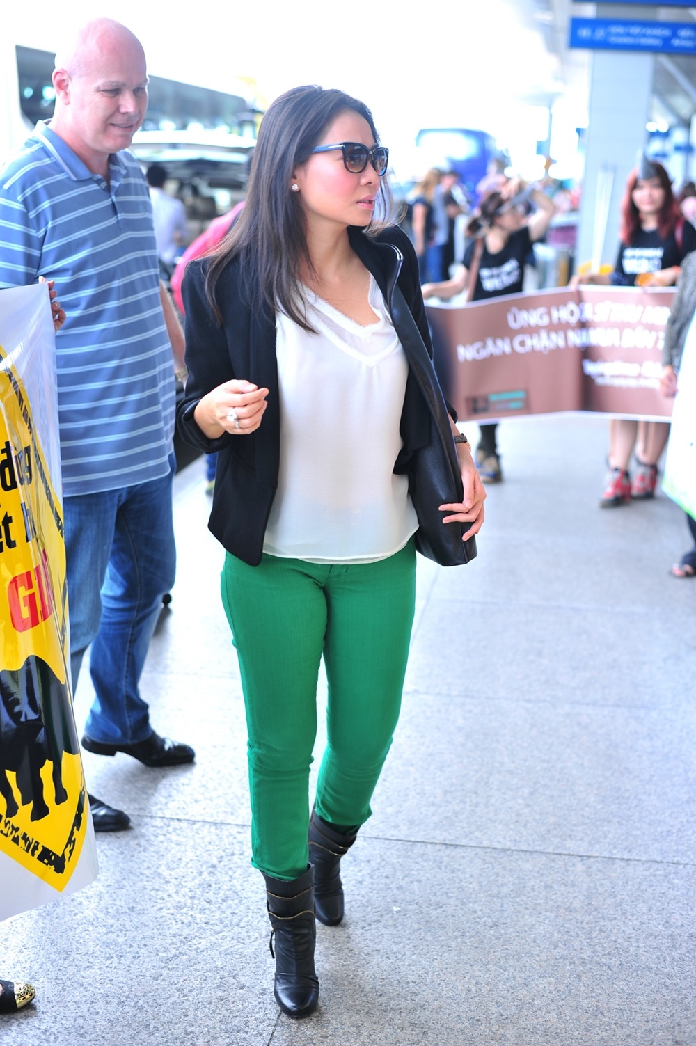 | Chiều 30/3, Thu Minh và chồng - doanh nhân Otto có mặt tại sân bay Tân Sơn Nhất để đi Nam Phi. Trong chuyến đi này, nữ ca sĩ cùng góp sức để tuyên truyền, ngăn chặn nạn săn sừng tê giác đang lan tràn. |