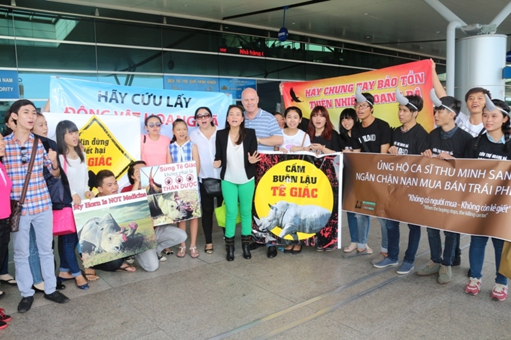 | Thu Minh chính là đại sứ thiện chí của chương trình Chấm dứt sử dụng sừng tê do do CHANGE, Tổ chức WildAid (Mỹ) và Quỹ hoang dã Phi Châu (Nam Phi) phối hợp thực hiện. |