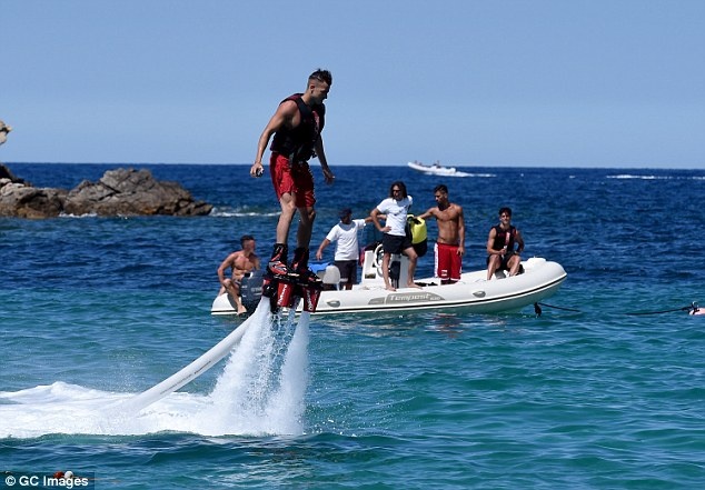 | Ngôi sao thuộc biên chế AC Milan chơi trò flyboard mạo hiểm. Mùa giải vừa qua, chân sút người Italy xa sân cỏ 3 tháng vì chấn thương. Anh ra sân vỏn vẹn 18 trận và ghi 3 bàn thắng. |