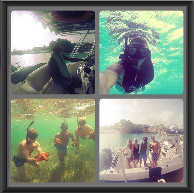 | Tiền vệ Jordan Henderson (trái) của Liverpool và chân sút Fraizer Campbell (Crystal Palace) khoe ảnh nghỉ dưỡng tại đảo Turks & Caicos. |