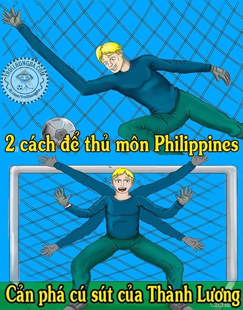 | Thủ môn của Philippines, Patrick Philip Dayto có nới dài tay hoặc mọc thêm 4 tay nữa cũng khó có thể truy cản được những cú sút của Hoàng Thịnh, Minh Tuấn và Thành Lương. |