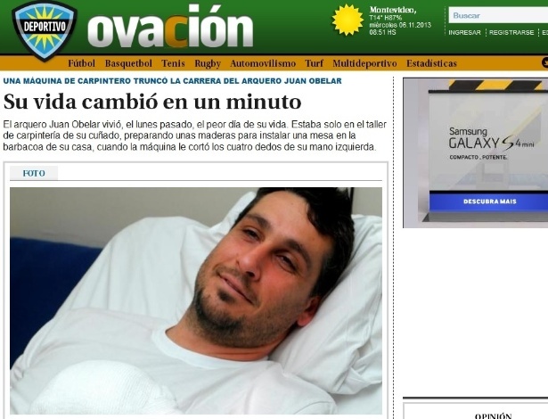 Anh chàng thủ môn tội nghiệp có tên Juan Obelar – thành viên của CLB Fenix thuộc giải VĐQG Uruguay. Theo phóng viên Charles Reynolds của tờ Daily Mail, Obelar đã gặp nạn trong lúc sửa nhà cách đây ít hôm. Do bất cẩn anh đã bị chiếc cưa chém đứt bốn ngón ở bàn tay trái, chỉ còn lại đúng ngón cái.