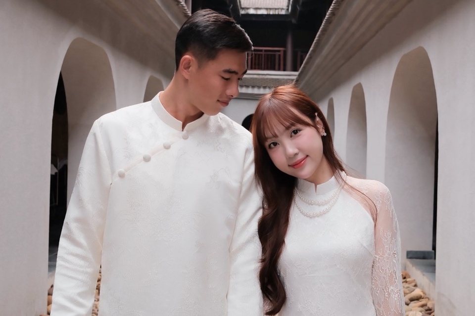 Về phía Quan Văn Chuẩn, hôm 19/2, anh cũng chia sẻ loạt khoảnh khắc ngọt ngào bên bà xã trong trang phục áo dài truyền thống. Nam thủ môn sinh năm 2001 gây chú ý với vẻ ngoài điển trai, lãng tử, trong khi Dương Hà ghi điểm với vẻ ngoài dịu dàng, đằm thắm. Đi kèm loạt ảnh, anh hài hước viết: "Biết vậy mình lấy vợ từ năm 19 tuổi".