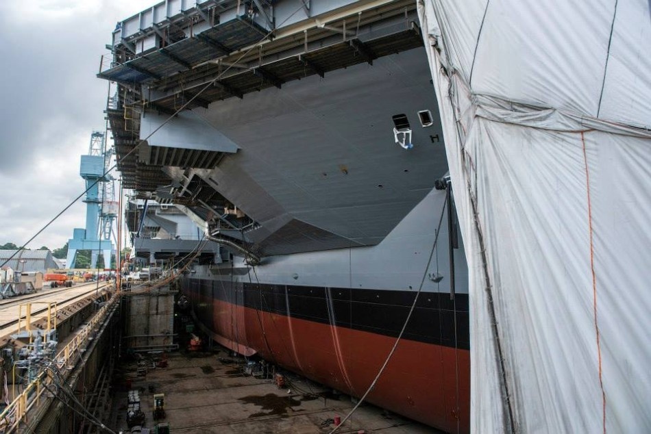 Tháng 8/2011, con tàu hoàn thành 50% cấu trúc thân. Tháng 4/2012, USS Gerald R. Ford được hoàn thành 75 %. Đúng 6 tháng sau, con tàu được hoàn thiện tới 88 %. Những ngày cuối năm 2012, 90 % kết cấu thân của USS Gerald R. Ford đã được hoàn thành. Ảnh: gmw.cn.